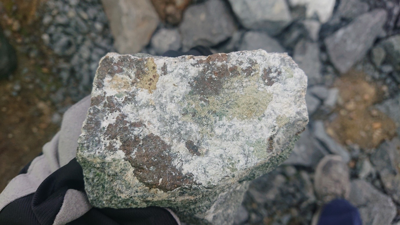 Figure 3. Ultramafic mining waste rock hand specimen at Boliden Kevitsa mine, Finland. Image ©Steven Pearce.